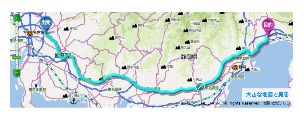 名古屋 IC から約190㎞ 東名高速のみで 片道約¥4750 およそ2時間45分